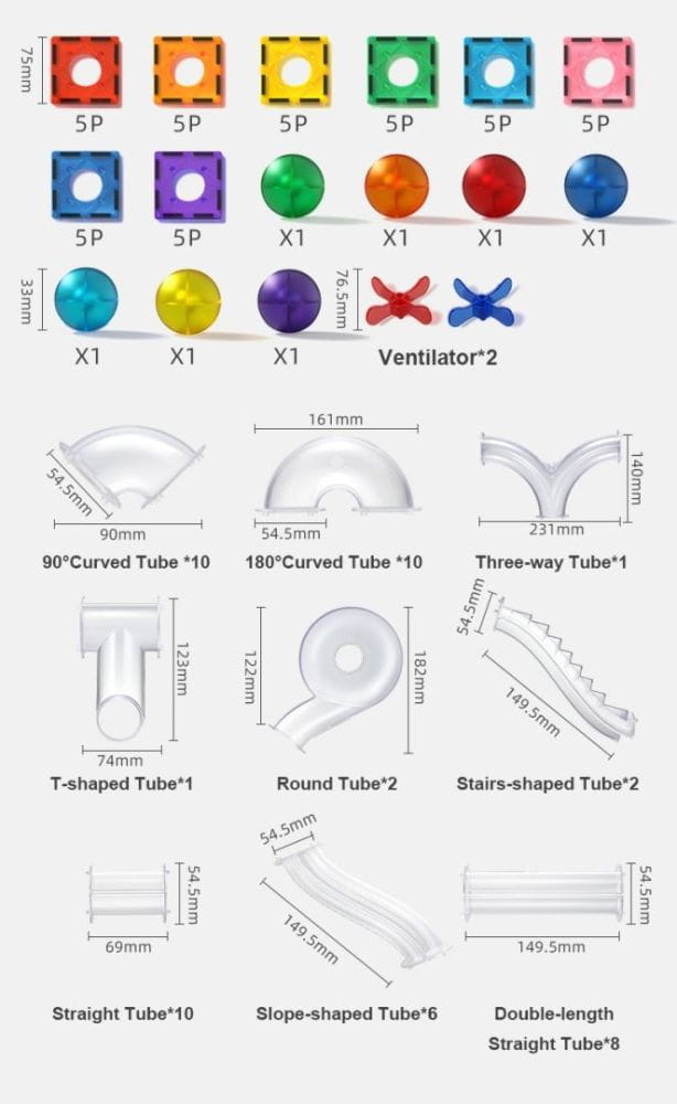 Klocki magnetyczne z kulkami – Tor kulkowy (100 elementów)Mideer