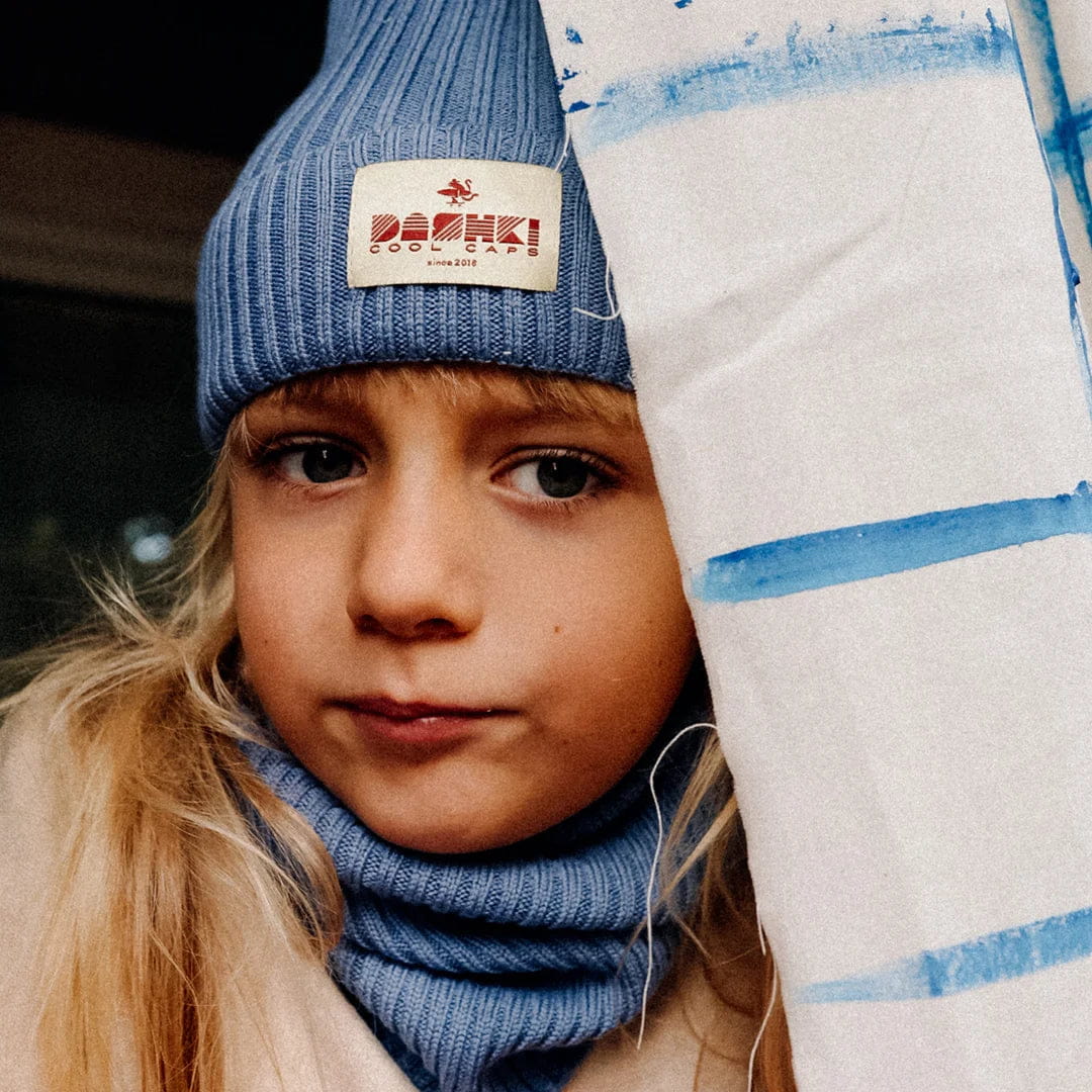 Czapki są cieplutkie, idealnie przylegają do głowy i nie uciskają oraz nie gryzą, a bawełniane podszycie dodaje komfortu i chroni wrażliwe uszka przed wiatrem. Komin otula szyję dając ciepło, nie dusi i nie drapie.