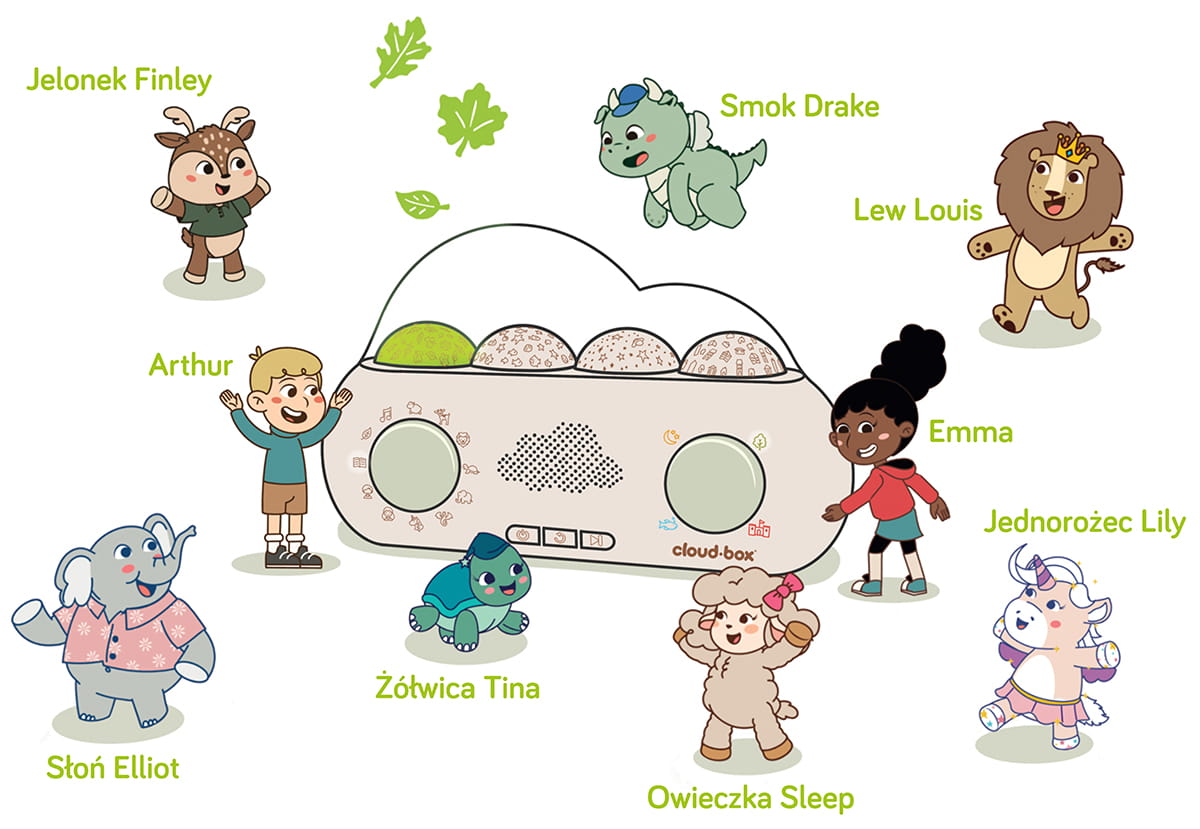 Z CloudBox™ mogą korzystać dzieci w wieku 0–8 lat. Zawiera ilustrowaną książkę z opowiadaniami.