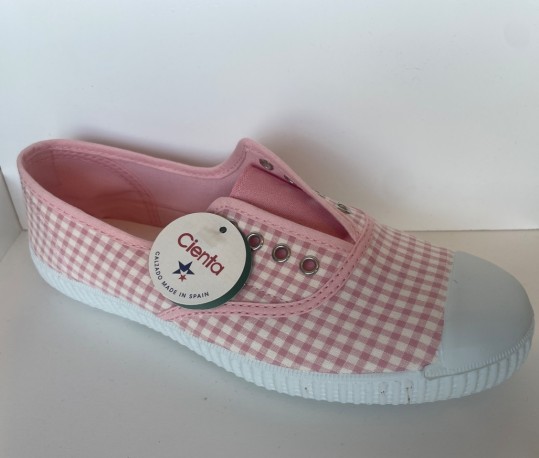 Tenisówki z gumowym noskiem Kratka Vichy różowa Cienta