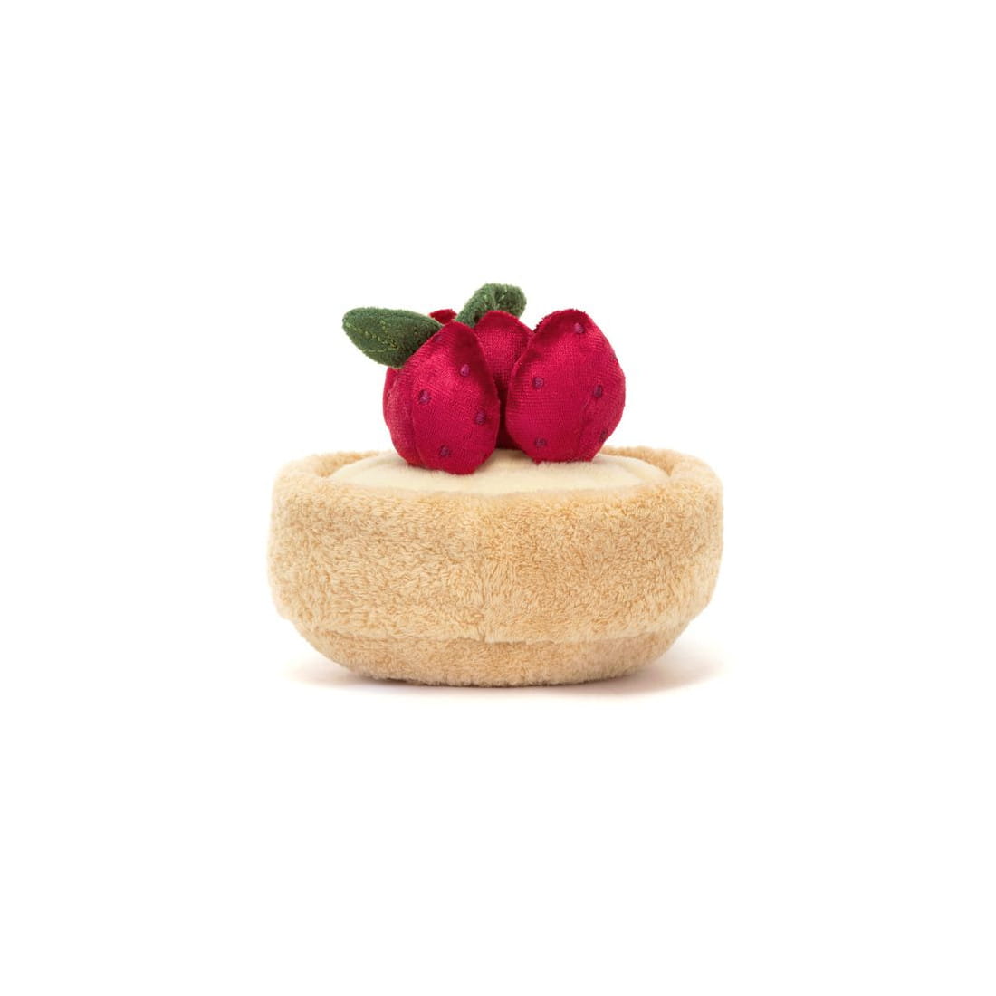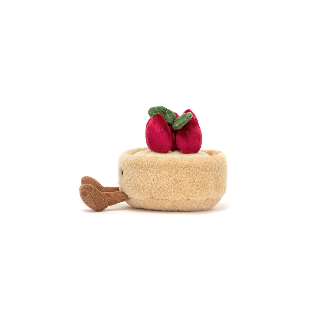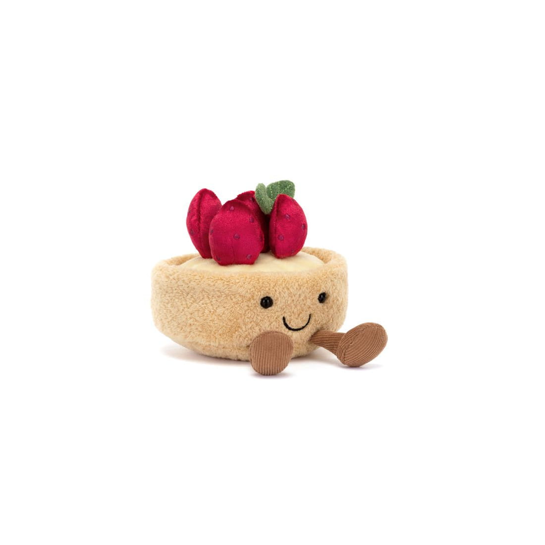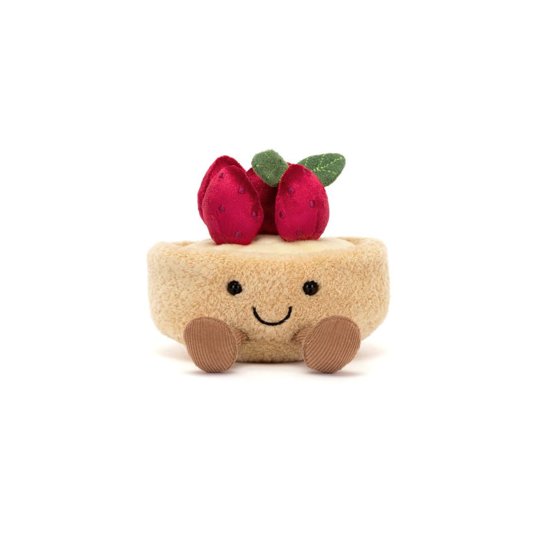 Wesoła Tarta Truskawkowa marki Jellycat to bardzo miły i przyjemny w dotyku pluszak. Te urocze ciastko ma futerko w kolorze biszkoptowym, kremową polewę i wspaniałą truskawkową koronę oraz uśmiechniętą buźkę i sztruksowe nóżki. Można się z nią bawić i przytulać. Pluszak został uszyty z najwyższej jakości, trwałych i bezpiecznych dla dzieci materiałów.